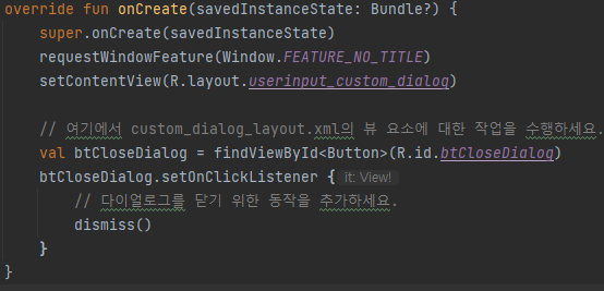 Activity.kt 파일의 버튼 클릭시 대화상자를 열 수 있는 코드