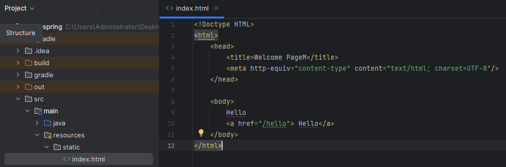 src/main/resources/static 경로에 index.html을 작성하면 Welcome page 기능을 한다.